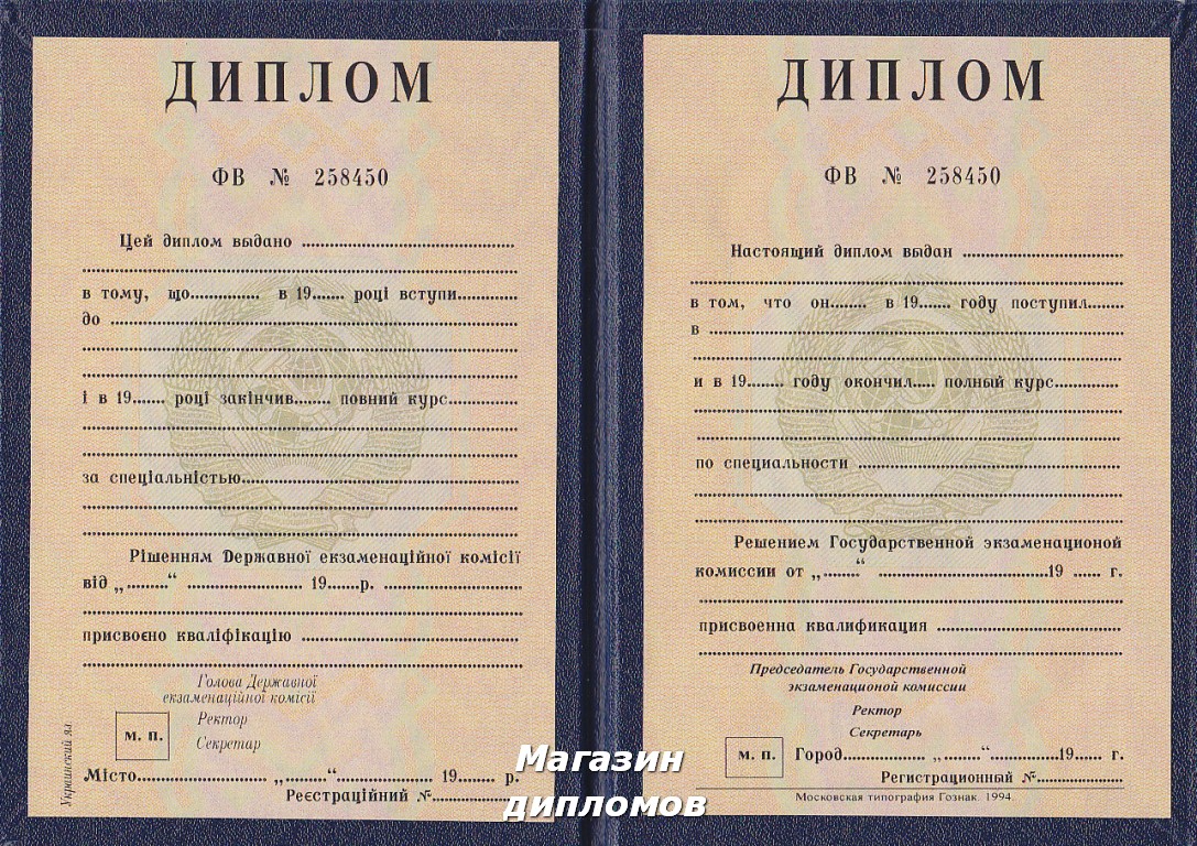 Диплом ВУЗа СССР, выдавался до 1996 года.